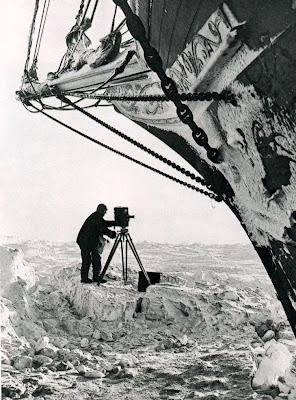 montó al respecto ( 2008) en la Casa de las Ciencias de Logroño. Son instantáneas de Frank Hurley, el algo altivo , muy inventivo y tenaz fotógrafo de la expedición.