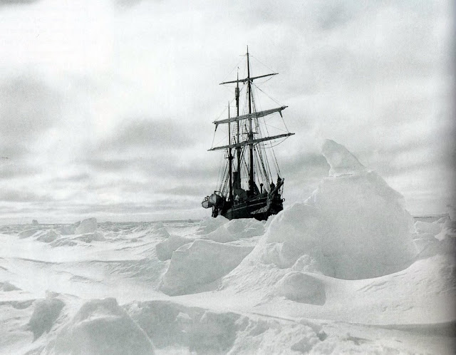 y sus compañeros quedan atrapados por el hielo a bordo del Endurance, moviendose al capricho de las